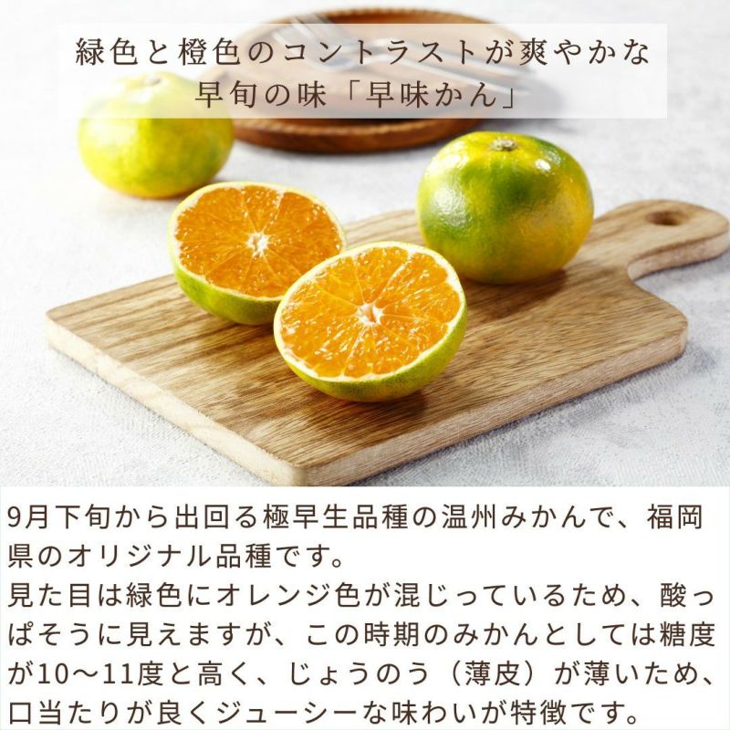 ※早生みかんの果皮は緑色ですが、果肉はきれいなオレンジ色で濃い味わいかつ、薄皮(じょうのう膜)がとても薄いため口当たりが非常に良い品種です。今しか味わえない早旬の贅沢をお楽しみください。