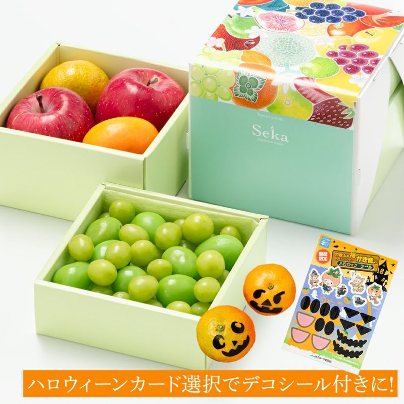 1段目は、ギフトとして国内外からも人気の高い、高級で香り豊かななシャインマスカットを贅沢に敷き詰め、底が深めの2段目には、長くお楽しみいただける、旬の大きめのフルーツを詰めており、手に渡した時のどっしりとした重量感が期待を高めます。