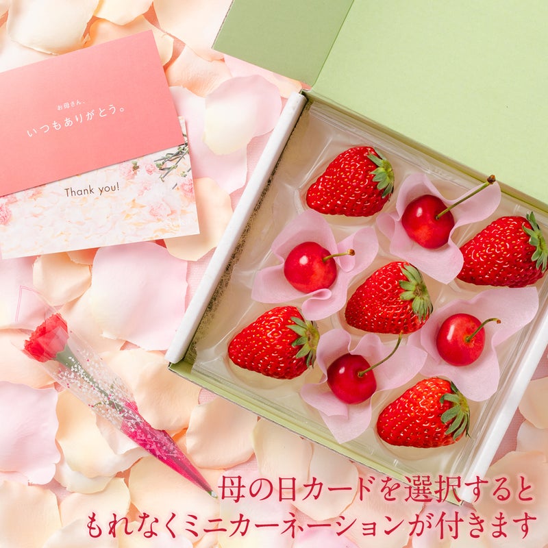 旬のさくらんぼと、この時期まで美味しくお召し上がりいただけるいちごを厳選した、100年続く仲卸ならではの、ほかのフルーツショップでは真似できないギフトセットに仕上げました。