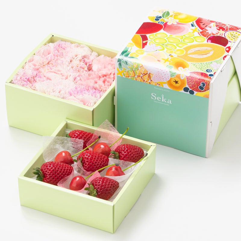 旬の国産いちごとさくらんぼ&カーネーションのミニお重セット
