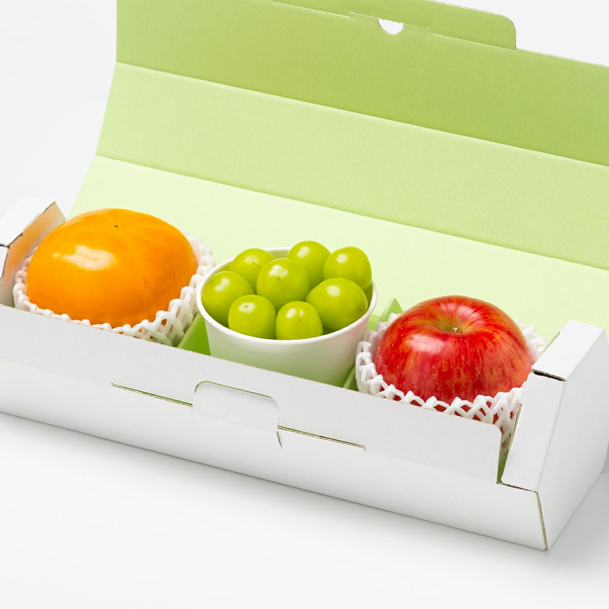 国産シャインマスカット(1カップ)とりんご(1玉)と柿(1玉)