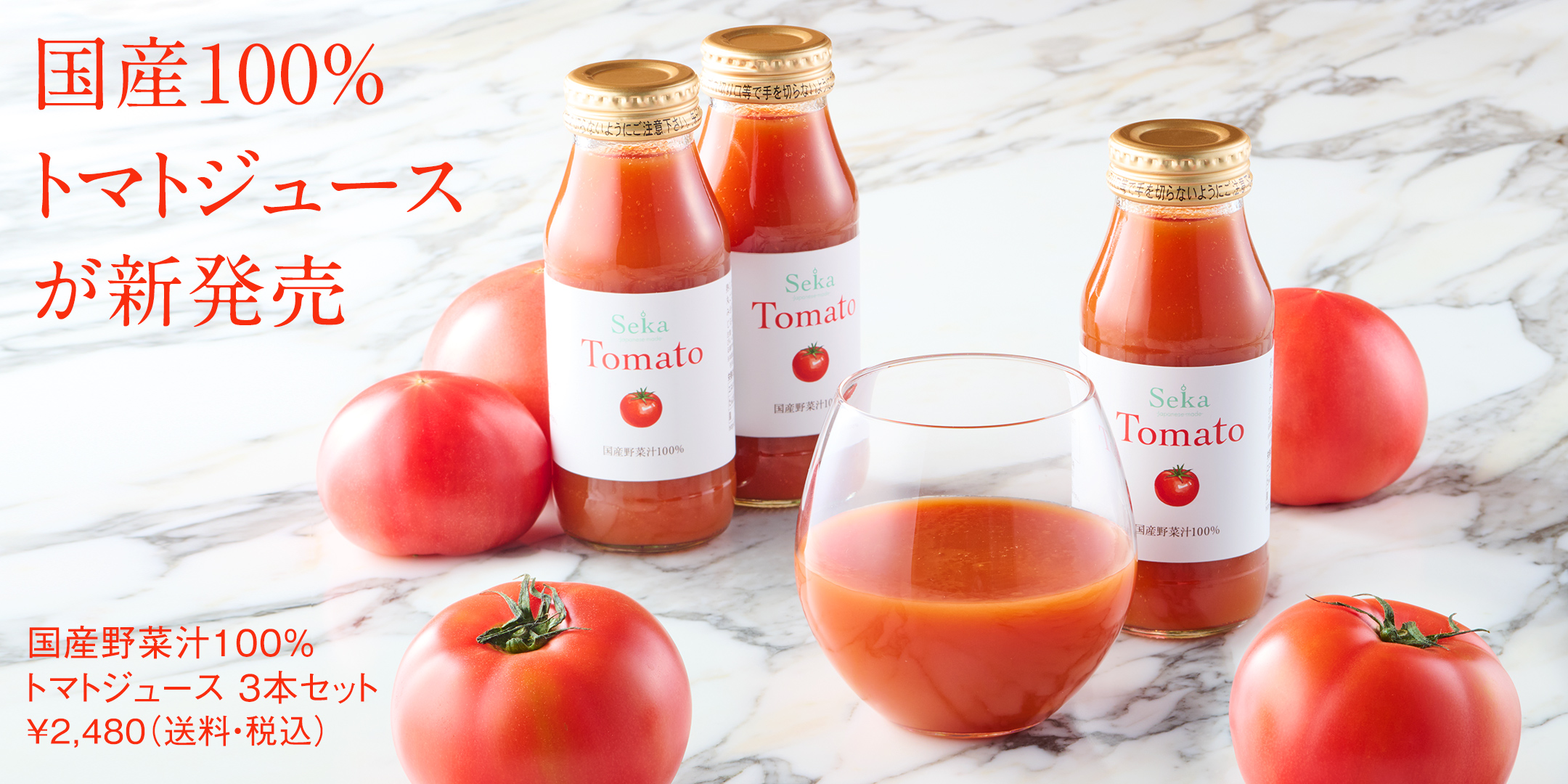 国産トマトと、その旨味をひきたてるための少量の塩のみで作られた、国産野菜汁100%のトマトジュースが新発売です。
